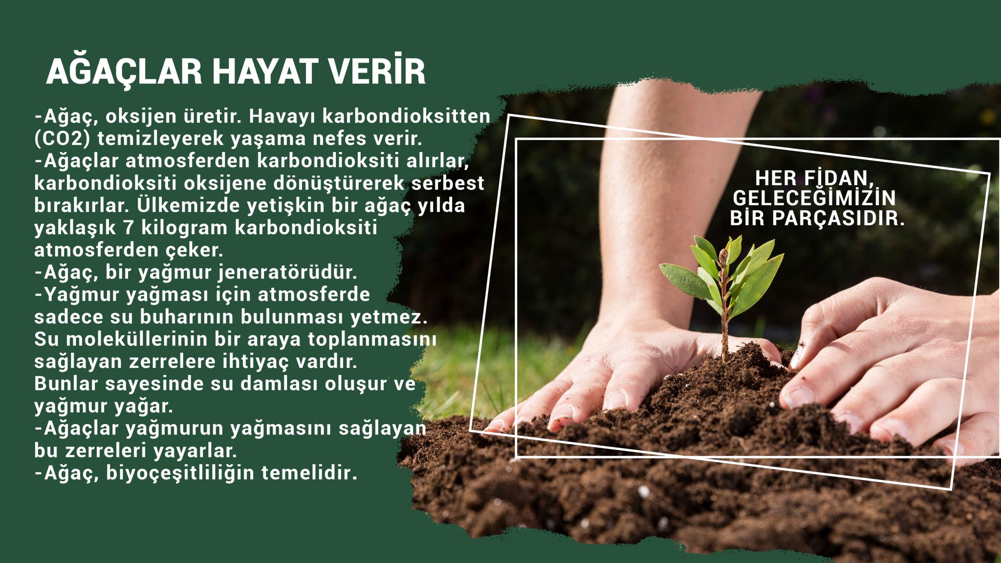 "Doğanın dilini fidanlarla konuşturun. Şimdi ağaç dikme zamanı geldi. Siz de katılın, doğayı geleceğimize taşıyalım."